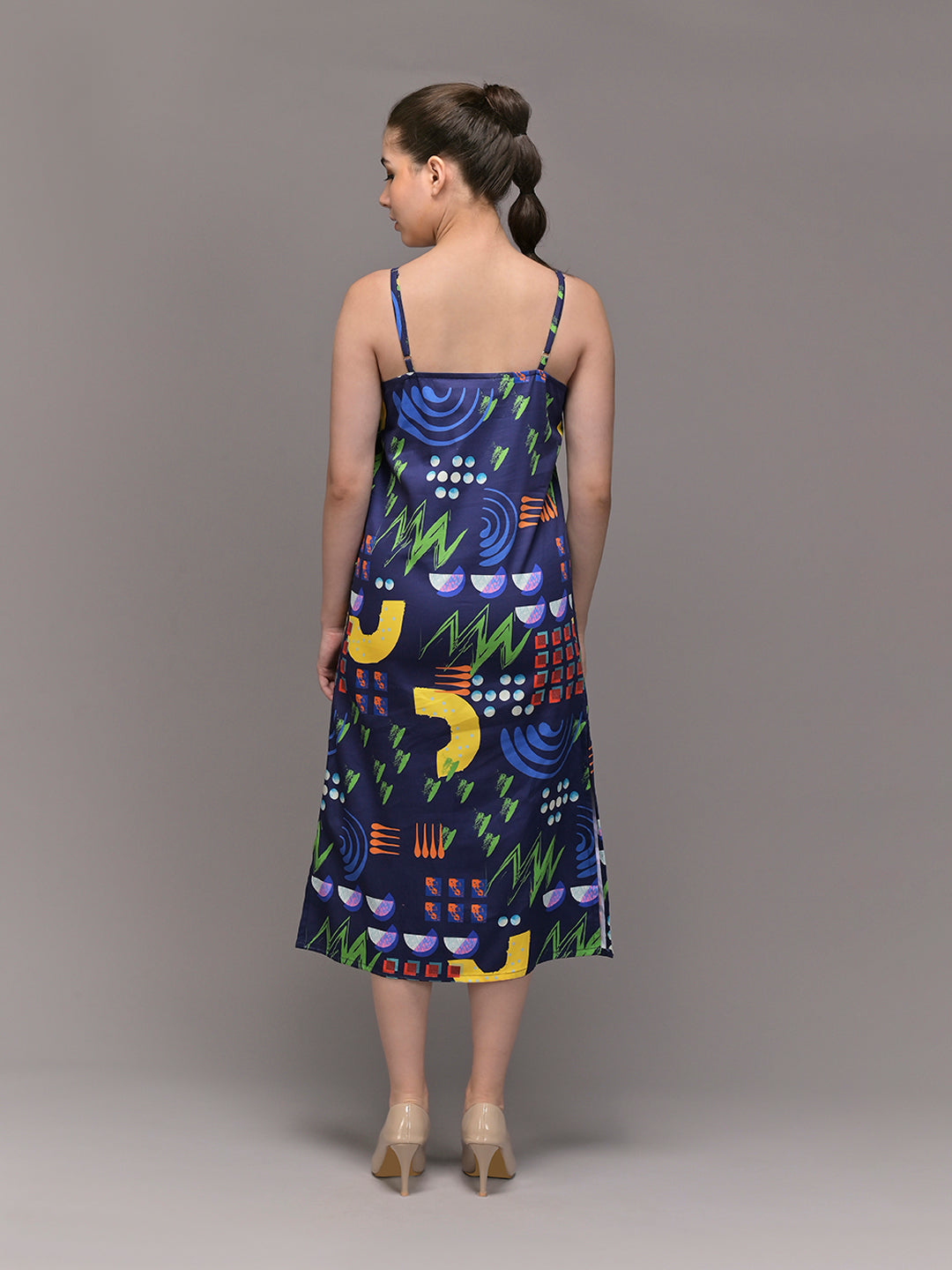 A spaghetti strap midi-length dress featuring side slits, offering a sleek and feminine silhouette.